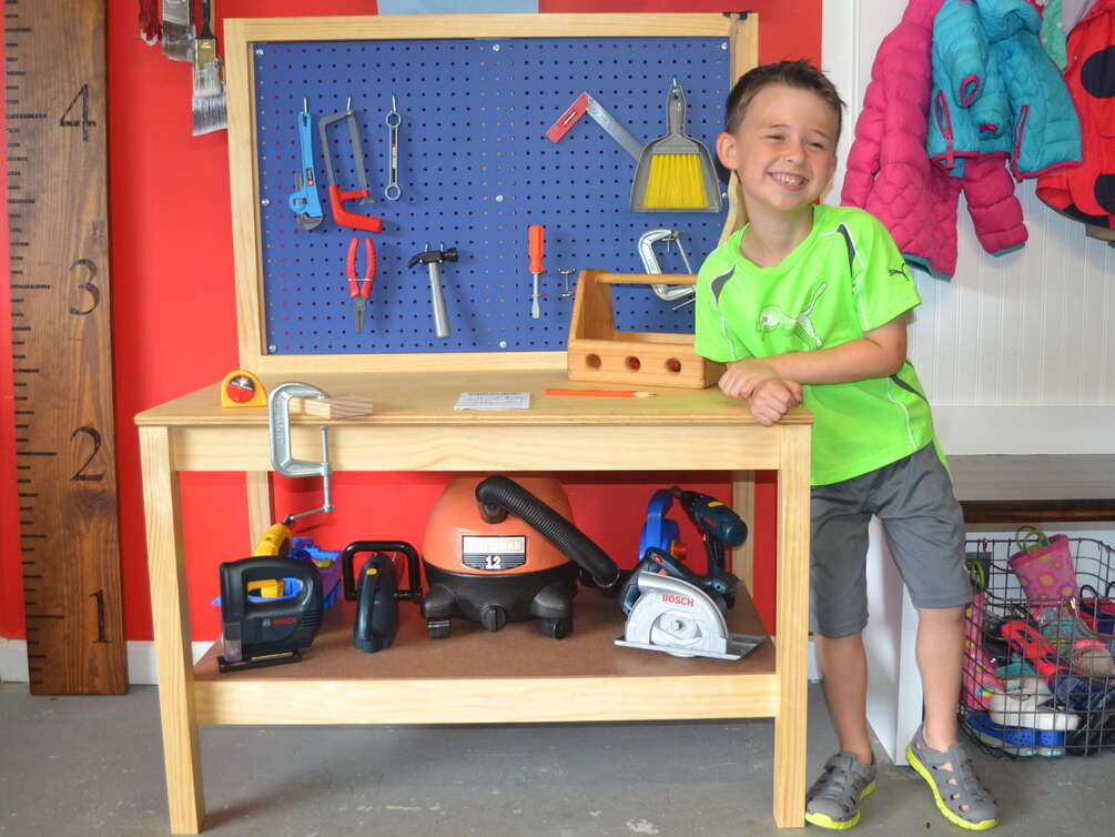 Included are step-by-step instructions (with photos and drawings) for building a custom Kids Workbench to inspire your little one to build, create and design their own projects.